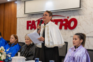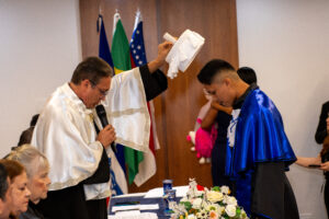 Durante o evento, os acadêmicos prestaram juramento, receberam a outorga de grau e participaram de homenagens a professores e familiares, em um momento marcado por emoção e reconhecimento à trajetória construída ao longo da graduação.