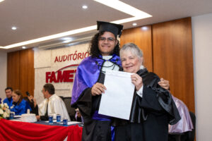Além da entrega dos diplomas simbólicos, também foram concedidas homenagens de honra ao mérito aos alunos com melhor desempenho acadêmico, reforçando o compromisso da instituição com a excelência no ensino.
