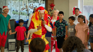 As crianças participaram de brincadeiras, jogos, sorteios e vivenciaram momentos mágicos com a presença de personagens natalinos, como Papai Noel e seus duendes. Além disso, foram distribuídos presentes e servido um lanche especial para todos os participantes, criando um ambiente de alegria e acolhimento.