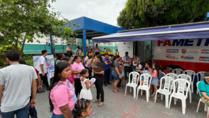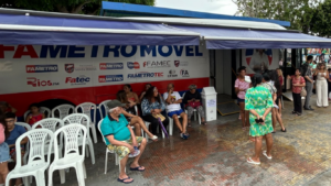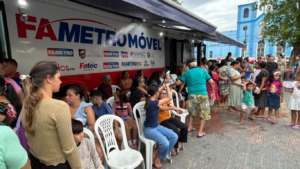 Nos dias 2 e 3 de dezembro, a Fametro Móvel realizou uma ação comunitária na Praça do Educandos, em frente à Matriz Nossa Senhora do Perpétuo Socorro (Rua Manoel Urbano, 280 – Educandos). Ao longo dos dois dias, mais de mil pessoas foram atendidas em serviços de saúde, estética, assistência social e orientação jurídica, em parceria com a diretoria do boi-bumbá Garanhão.