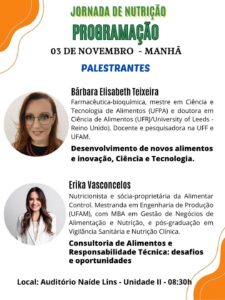 Aberta aos acadêmicos do curso de Nutrição e à comunidade acadêmica, a Jornada será um espaço para reflexões sobre escolhas alimentares conscientes, atualizações científicas e o compartilhamento de boas práticas profissionais.
