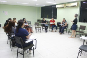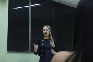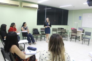 Durante o encontro, as estudantes participaram de uma roda de apresentação conduzida pela professora Sammya, que apresentou os principais conceitos do curso, além da metodologia e da estrutura da modalidade semipresencial, que combina atividades presenciais e recursos digitais de aprendizagem.