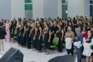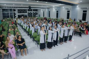 Na última quinta-feira (15), o Polo Porto de Moz da Fametro realizou a Cerimônia do Jaleco para 163 alunos dos cursos de Enfermagem, Farmácia, Fisioterapia, Nutrição e Estética e Cosmética. O evento simbolizou o início da jornada acadêmica prática desses estudantes, reforçando o compromisso da instituição com a formação de profissionais qualificados na área da saúde.