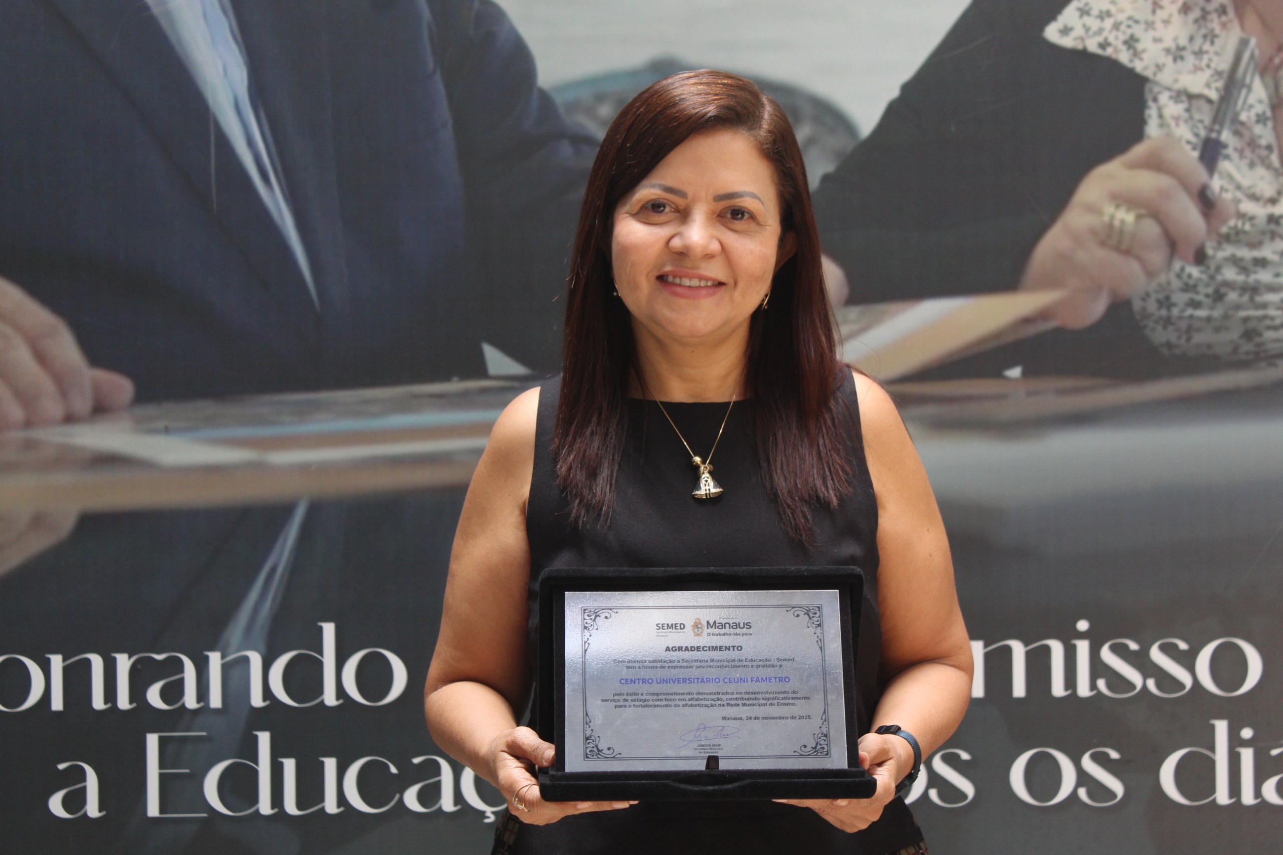 O Centro Universitário Fametro encerrou o mês de novembro com importantes conquistas institucionais, entre elas, o reconhecimento da Secretaria Municipal de Educação de Manaus (SEMED). A instituição recebeu uma placa de homenagem pelo êxito e comprometimento no desenvolvimento do serviço de estágio voltado à alfabetização, iniciativa que vem contribuindo de forma expressiva para o fortalecimento do processo de ensino-aprendizagem na rede municipal.