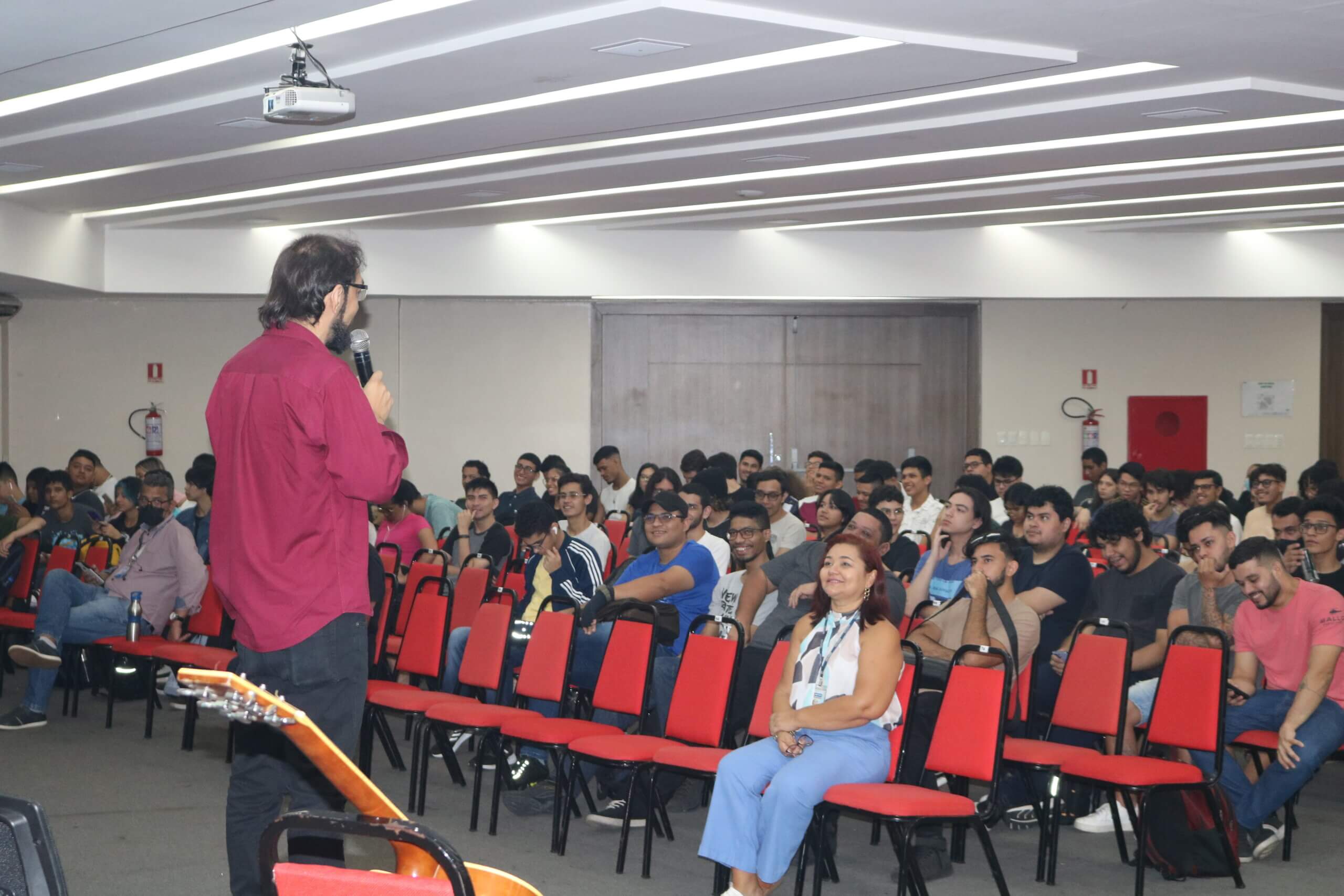 Na programação noturna, os alunos também tiveram os relatos de experiência com egressos e a palestra de Daniel Goettenauer, da Manaus Tech Hub, com sessões para perguntas e dúvidas dos alunos.