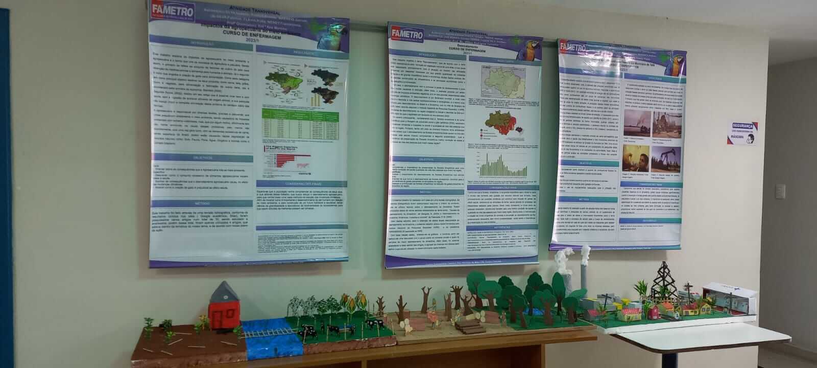 No segundo dia do evento (11/5), no hall da unidade, foram realizadas exposições com maquetes, banners, utilização do microscópio caseiro, entre outras atividades.
