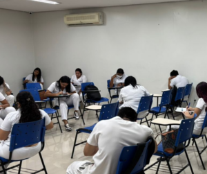 Os alunos das turmas matutina e vespertina participaram da abertura da campanha Dezembro Vermelho, voltada à prevenção de ISTs, no Hospital HPSCZS. A ação contou com a supervisão da enfermeira Carmen, que acompanhou as práticas educativas e informativas realizadas pelos estudantes.