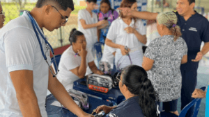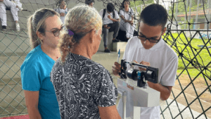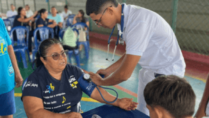 Aferições de pressão arterial (PA) também foram realizadas, e os alunos ministraram palestras informativas sobre cuidados com a saúde. A atividade contou com o apoio dos professores e enfermeiros Joelma Conde e Gen Padron, além do acompanhamento da gestora Flávia Soares.