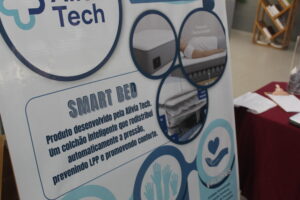 A acadêmica Pollianna Santos apresentou o projeto SmartBed, um colchão inteligente voltado à redistribuição de pressão e prevenção de LPP (Lesões por Pressão). “A missão era criar uma empresa e idealizar um produto para venda. Tivemos um mês para desenvolver tudo. Apesar de ser um trabalho acadêmico, o projeto ficou tão bom que pode até ser pensado para execução real no futuro.”