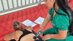 Na manhã desta terça-feira (27), os alunos do 3º e 5º período do curso de Fisioterapia da Fametro em Parintins participaram da primeira ação prática do período, realizada na Arena Rubens dos Santos. Orientados pelos professores Dárica Moraes, Karina Reis e Dyemison Ferreira, os acadêmicos realizaram uma atividade de fisioterapia que encantou a todos os presentes.