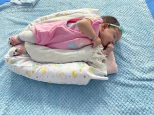 No início da prática, foi realizada uma avaliação neurofuncional focada nos marcos motores e no desenvolvimento neuropsicomotor dos bebês. Foram ensinadas técnicas de posicionamento adequado no leito, utilizadas tanto em ambientes hospitalares quanto em atendimentos domiciliares, além de práticas de estimulação de funções motoras essenciais para bebês prematuros. Essas técnicas são aplicadas para compensar as fases de desenvolvimento interrompidas pela prematuridade, garantindo o estímulo necessário para um desenvolvimento saudável.