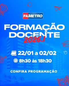 Há 23 anos, o Centro Universitário Fametro constrói sua história com base em um princípio inegociável: investir continuamente em quem faz a educação acontecer: seus professores. Em 2026, esse compromisso se fortalece ainda mais com o início da Formação Docente 2026.1, um ciclo estruturado de atividades pedagógicas, acadêmicas e estratégicas voltadas à qualificação permanente do corpo docente.