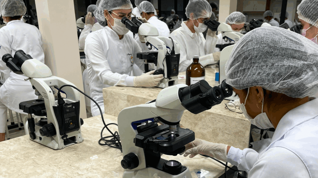 Sob orientação da professora Fabiani Monteiro, os estudantes participaram de uma atividade prática em microscopia, onde analisaram células da mucosa bucal e da cebola, comparando os dois principais grupos celulares e aprendendo a utilizar o microscópio de forma correta. Segundo a professora, o novo laboratório é um ganho significativo para a formação dos acadêmicos.
