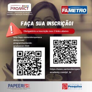 A Coordenação de Pesquisa e Extensão do Grupo Fametro Dra Suelânia Figueiredo, convoca todos os membros da comunidade acadêmica, incluindo professores e colaboradores, a se inscreverem no Programa Santander. A iniciativa tem como objetivo facilitar o acesso a informações e serviços importantes para os alunos, e sua participação ativa é essencial para garantir as bolsas que podem beneficiar toda a comunidade acadêmica.