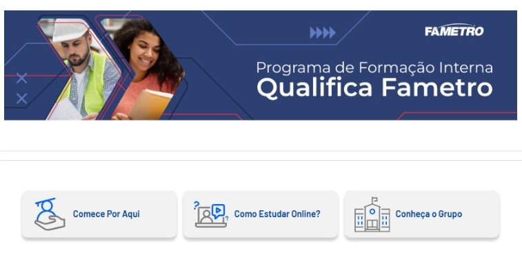 Para se inscrever, o colaborador deve acessar o link https://qualifica.fametro.edu.br/, e utilizar o mesmo usuário e senha do Portal do Colaborador.
