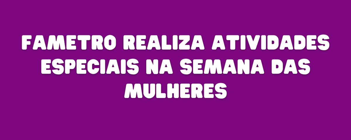 Por essas razões a Fametro lembra que é importantíssimo todas as mulheres tirarem um tempinho para cuidar de si. Atividades como palestras, oficina de comidas rápidas e saudáveis, massagem, higienização e nutrição facial, design de sobrancelhas, nutrição capilar, dança, orientações e exercícios vocais, saúde auditiva, avaliação de deglutição, exposição do dia Internacional da mulher, e atividades de fisioterapia farão parte das atividades promovidas pela Fametro.