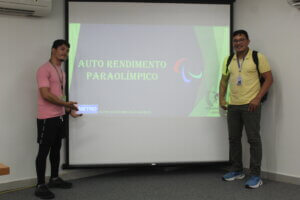 Na manhã do dia (2), acadêmicos do 3º período do curso de Educação Física do Centro Universitário Fametro realizaram a palestra “Alto Rendimento Paralímpico”, com foco na inclusão de pessoas com deficiência no esporte. O evento aconteceu no miniauditório da Unidade 5 e abordou diferentes síndromes e condições que desafiam os atletas paralímpicos, como Síndrome de Down, Stargardt, Artrogripose Múltipla Congênita, Autismo e Distrofia Muscular de Duchenne.