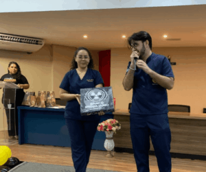 Entre os destaques da programação, chamou atenção a demonstração do primeiro aplicativo desenvolvido pelos alunos do 6º período, em parceria com estudantes do curso de Informática. A ferramenta, chamada “Bony Densitometry”, deve ser disponibilizada em breve na Play Store e promete auxiliar na compreensão e simulação de processos de densitometria óssea, aproximando teoria e prática por meio da tecnologia.
