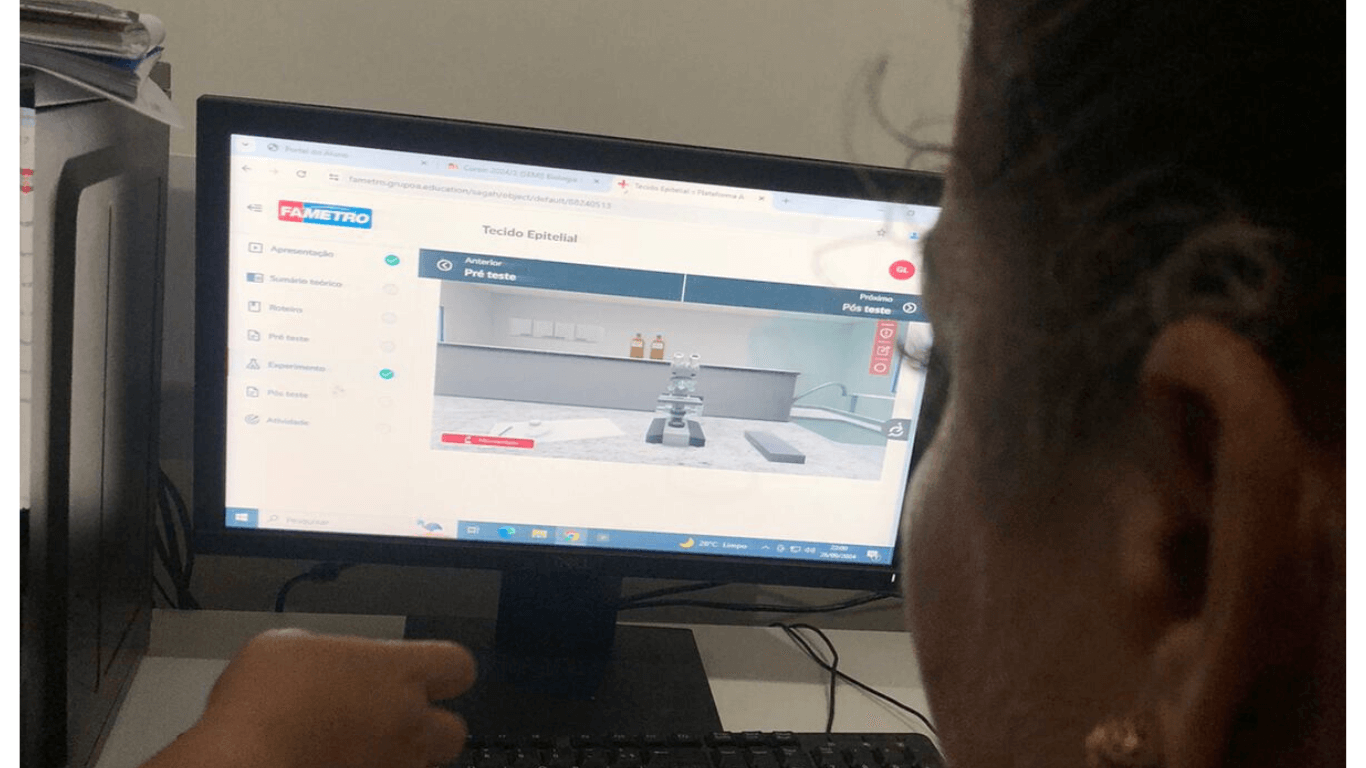 Além do ganho pedagógico, os laboratórios virtuais proporcionam benefícios tecnológicos, permitindo que os estudantes desenvolvam competências e habilidades essenciais. Essa ferramenta é amplamente utilizada no curso de Enfermagem EaD da Fametro, onde os alunos aproveitam o ambiente digital de forma dinâmica durante os encontros presenciais, sempre orientados por tutores.