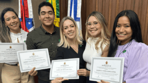 A coordenadora do curso de Medicina Veterinária da Fametro, Dra. Marina Brolio, representou a instituição e discursou em nome do Centro Universitário Fametro, destacando a importância da profissão para a saúde pública e o bem-estar animal. A Dra. Marina também teve a oportunidade de indicar docentes e egressos do curso para serem homenageados, valorizando o trabalho daqueles que se dedicam ao cuidado e à proteção dos animais.