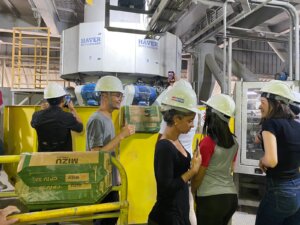 Durante a visita, os alunos foram acompanhados pela engenheira Rebeca Faria, que apresentou o histórico da empresa, as instalações da fábrica e os processos de produção dos cimentos CPIV-32 e CPII-Z 40.