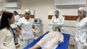 A metodologia busca garantir que os futuros profissionais estejam preparados e confiantes para lidar com situações críticas, reconhecendo rapidamente os sinais de emergência e aplicando os procedimentos adequados. A estudante Valéria, que participou da atividade, reforçou o impacto positivo dessa prática na sua formação. “As aulas nos laboratórios são essenciais para o nosso desenvolvimento. Os equipamentos são modernos e nos ajudam a aprender as técnicas com mais precisão, o que nos prepara para a realidade do mercado”, afirmou.