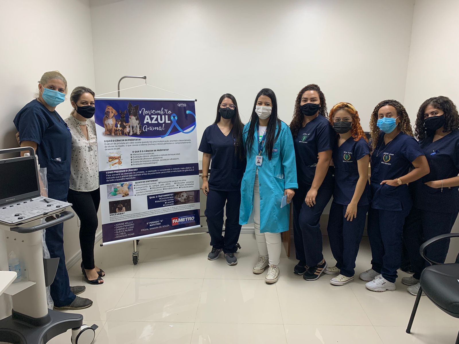 Em alusão ao Novembro Azul, o Curso de Medicina Veterinária do Centro Universitário Fametro realizou uma ação no Centro de Atendimento à Saúde Animal (CASA) para alertar sobre a importância da prevenção de doenças, como o câncer de próstata. Os acadêmicos ministraram palestras, fizeram exames com a supervisão da Professora Samara Souza e, na aula prática, eles puderam desenvolver habilidades relacionadas a diagnóstico por imagem e atendimento de prevenção para os cães.