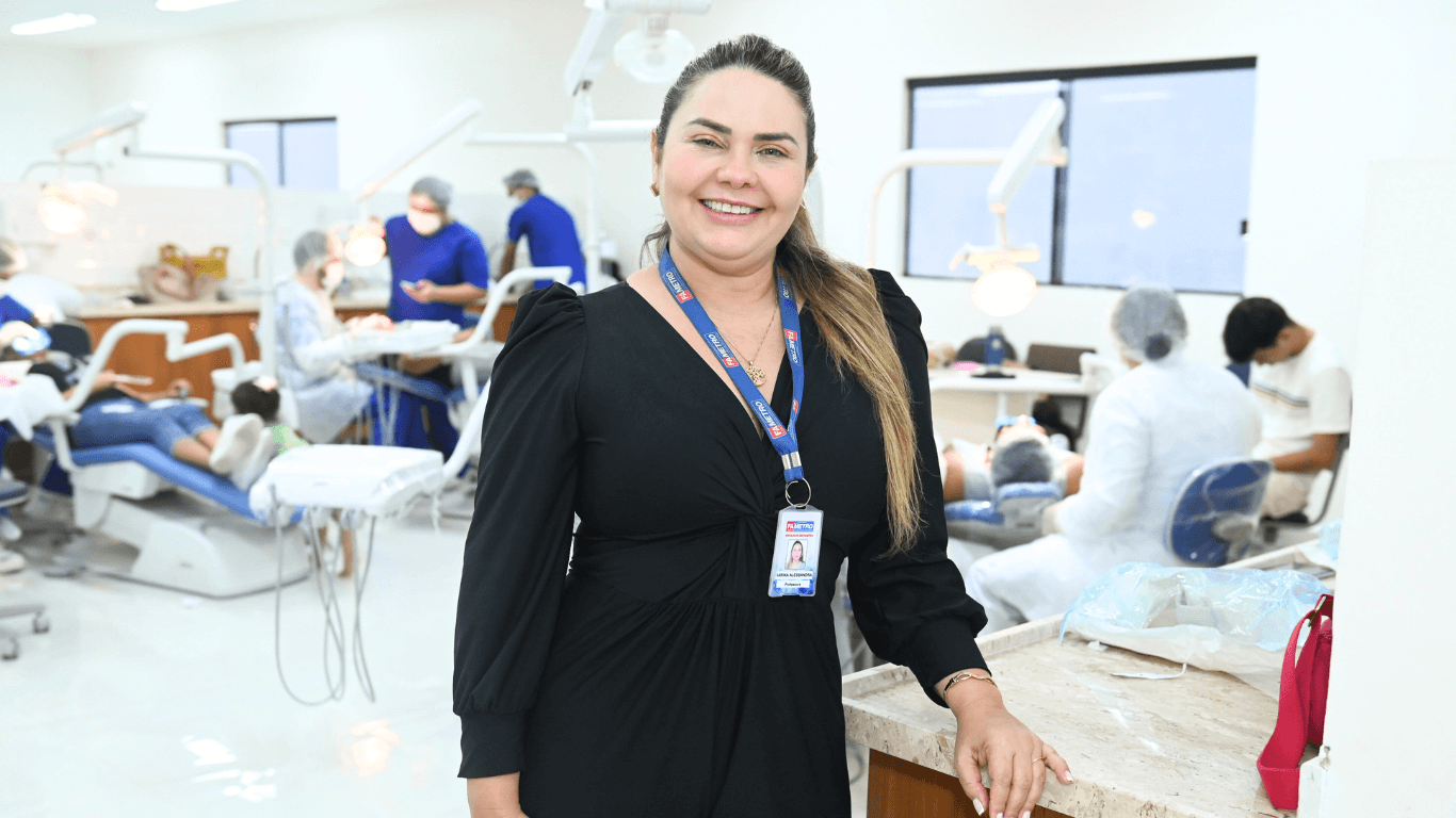 Karina Guimarães, coordenadora do curso do Centro Universitário Fametro, compartilhou algumas áreas de destaque, incluindo Harmonização Orofacial, Endodontia, Dentística, Prótese Dentária, Ortodontia, Cirurgia e Traumatologia Bucomaxilofacial, Odontopediatria, Implantodontia, Periodontia e Disfunção Temporomandibular e entre outros.