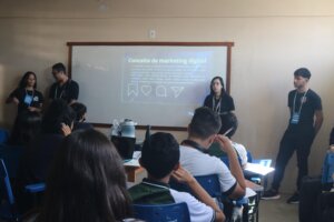 Na Escola Bernardino Lindoso, estudantes do ensino médio participaram de diversas atividades, como oficinas e aulas sobre Marketing Digital e Logística Reversa, desenvolvidas pelos alunos e professores do Centro Universitário.