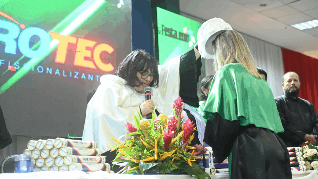 “É um sentimento inexplicável, é de muita gratidão, muita felicidade, porque esse é o ápice realmente do nosso trabalho, receber alunos e devolver para a sociedade profissionais capazes de transformar aqui a sociedade que a gente vive. Então, hoje é entregar esses mais de 500 profissionais para o mercado de trabalho nos dá a certeza do dever cumprido e a gente espera que eles estejam bem sucedidos, tenham as portas abertas porque eles estão aptos para isso”, afirma a mantenedora, Profª Maria do Carmo Seffair.