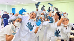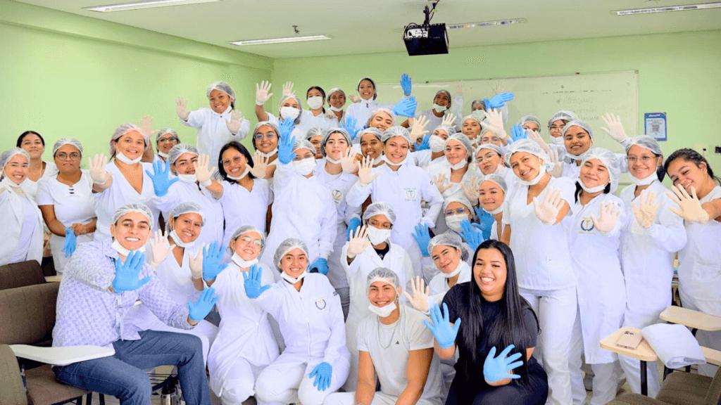 Durante a atividade, os estudantes aprenderam sobre a função de cada EPI, como luvas, máscaras, aventais, óculos de proteção e gorros. Além disso, foram instruídos sobre as técnicas adequadas de colocação e remoção dos equipamentos para evitar contaminações. A aula também destacou a importância do descarte correto desses materiais, reforçando os conceitos de biossegurança e a responsabilidade dos profissionais da saúde e estética na manutenção de um ambiente seguro.