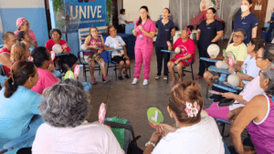 Durante a visita, os universitários do 6º período apresentaram aos idosos informações sobre hipertensão e diabetes, as doenças crônicas que afetam grande parte da população idosa. O objetivo foi conscientizar sobre a prevenção e o reconhecimento precoce dos sintomas, como problemas renais, perda de visão, níveis elevados de açúcar no sangue, fadiga, visão turva e formigamentos, destacando a importância de procurar um profissional de saúde para um diagnóstico preciso.