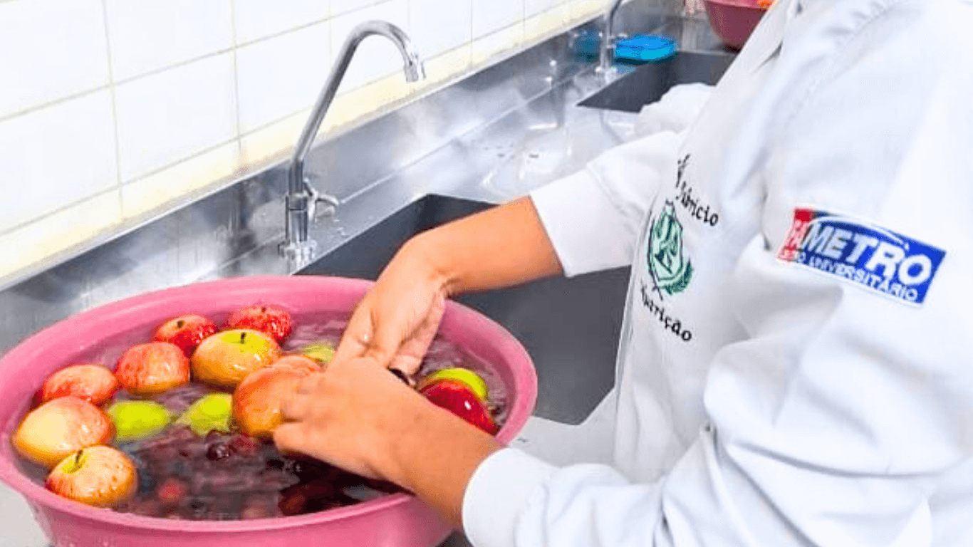 Os alunos do terceiro período dos cursos de Nutrição, tanto do turno matutino quanto noturno, do Centro Universitário Fametro, participaram de uma aula prática sobre higiene de frutas, verduras e legumes, dentro da disciplina de Higiene e Legislação dos Alimentos. A atividade foi ministrada pela professora MSc. Stephany França, que abordou a importância de garantir a segurança dos alimentos para o consumo.