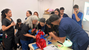 Durante a atividade, os estudantes abordaram conceitos fundamentais sobre saúde mental, fatores de risco e estratégias de prevenção, levando informação acessível e orientações práticas ao público.