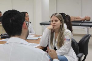 A primeira semana acadêmica de medicina contou com uma programação completa e com temas essenciais para a formação e desenvolvimentos dos futuros profissionais. No dia 30 às atividades realizadas foram sobre Visão anatomofisiológica da utilização da toxina botulínica na medicina atual, Oficina de Elaboração de Currículo Lattes, Parada Cardiorrespiratória – ACLS em Adultos, Saúde Mental e Burnout Médico, Anamnese e Exame Físico, Anatomia e Fisiologia, Eletrocardiograma e Sutura.