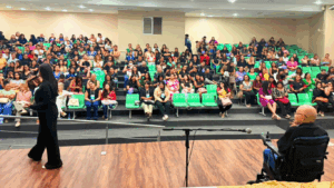 Nos dias 20 e 21 de maio, a Fametro Leste promoveu a Semana de Pedagogia, no CETI Elisa Bessa Freire, reunindo acadêmicos, docentes e profissionais da área em um encontro voltado à formação e ao debate sobre práticas pedagógicas inclusivas. Com o tema “Nada sobre nós sem nós: saberes, práticas e estratégias”, o evento contou com a participação do renomado Dr. Dolmir Pacheco, cuja palestra de abertura mobilizou mais de 300 pessoas.