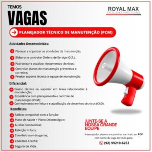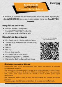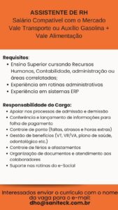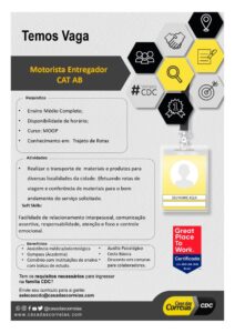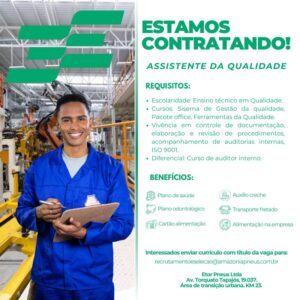 Requisitos: ensino médio completo, experiência, disponibilidade de turno