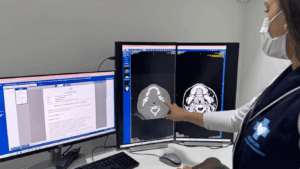 Acadêmicos do 5º período matutino do curso de Radiologia do Centro Universitário Fametro participaram, na manhã desta sexta-feira (2), de uma aula prática com foco em Tomografia Computadorizada. A atividade teve como objetivo o aperfeiçoamento das técnicas de imagem e o aprofundamento no processo de calibração dos equipamentos.