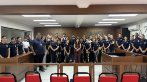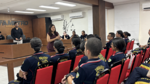 A programação também incluiu dinâmicas interativas. No laboratório de júri simulado, por exemplo, os estudantes participaram de uma encenação jurídica, assumindo papéis como plateia, jurados e até mesmo juiz, vivenciando uma atividade semelhante às realizadas pelos acadêmicos do curso de Direito.