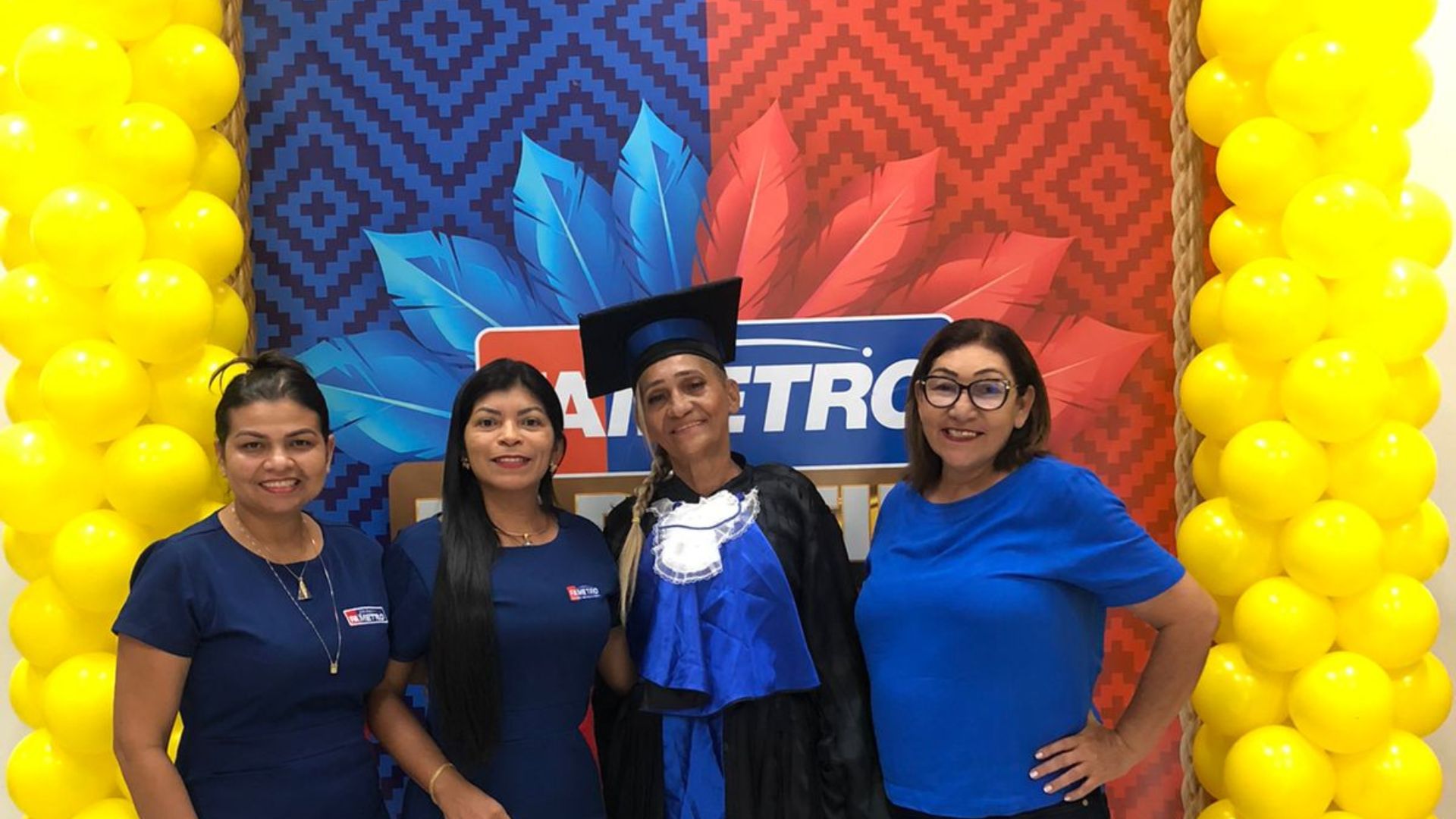 Aos 59 anos, a vendedora ambulante Paula da Silva Nogueira realizou o sonho de concluir os estudos e se formar no Ensino Médio, por meio da modalidade Educação de Jovens e Adultos (EJA), oferecida na Fametro Parintins.
