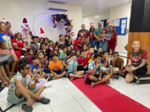 No último sábado (14), a Faculdade de Tecnologia da Amazônia (FATEC), integrante do Grupo Fametro, promoveu um evento especial em sua unidade na Nova Cidade, em Manaus. A “Vila de Natal” reuniu cerca de 600 pessoas, entre alunos, professores, colaboradores e moradores da comunidade, com foco especial nas crianças, que receberam presentes e participaram de diversas atividades festivas.