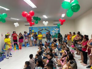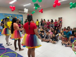 A programação incluiu apresentações culturais, brincadeiras recreativas e um coral infantil formado por estudantes de uma escola local. Alunos dos cursos de Psicologia, Pedagogia, Estética, Direito e Gestão também participaram, enriquecendo a experiência para as crianças e suas famílias.