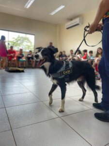 “Para nós, é uma honra contribuir com essa manhã tão especial. Trouxemos os cães de terapia do Comando de Policiamento com cães, além de viaturas que permitiram às crianças tirar fotos com os policiais, trazendo mais alegria ao evento.”
