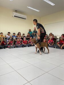 As atividades realizadas pela Polícia Militar incluíram demonstrações com cães treinados e uma exposição de viaturas no estacionamento, criando momentos únicos de interação para os participantes.